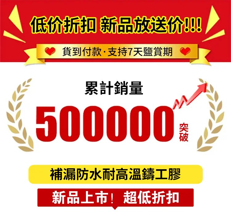 2分鐘前【補漏防水耐高溫】強力雙管鑄工膠 - 【秒殺】6件HK$359