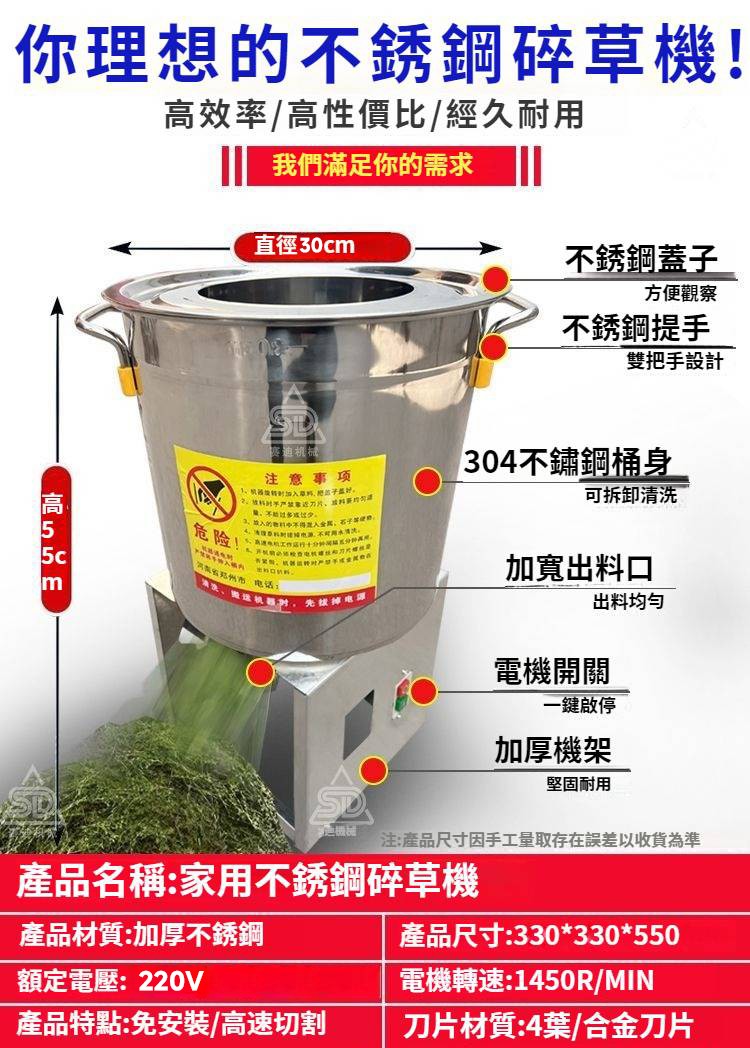 4分鐘前【養殖好幫手】多功能碎菜機,碎菜只需1秒,廠家直銷,貨到付款 量大優惠! - 600W不鏽鋼台式碎菜機--NT$2990